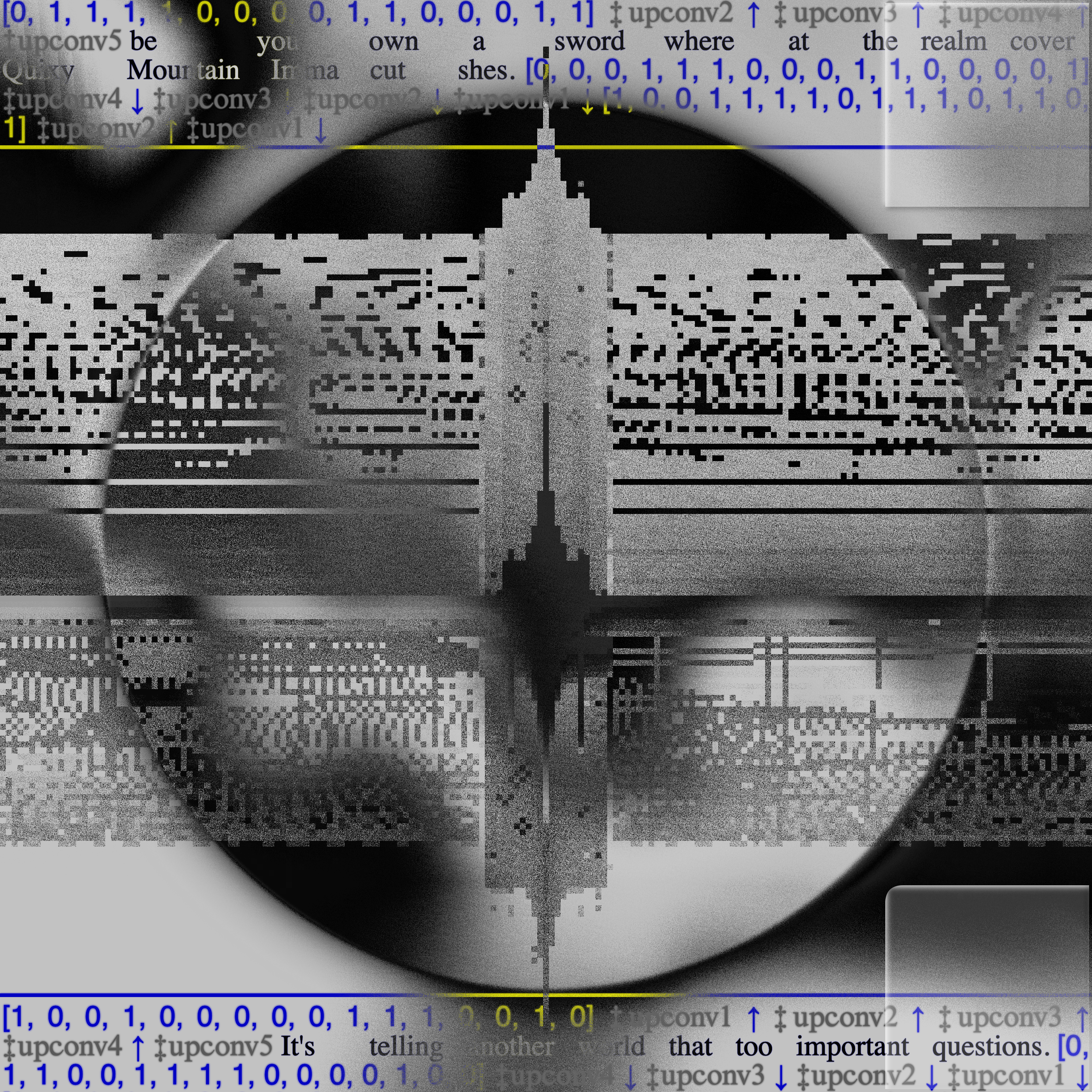 Thinking of these interiors as architectures rather than as black boxes matters for at least two reasons. First, it foregrounds the materiality of latent space that can be probed, perturbed, and partially mapped. Exploration of the latent space suggests that the abstract is in fact physical, and that the purely symbolic level does not exist. Second, it reframes interpretability and criticism as spatial practices, in which latent spacecraft conceptually navigates a space that cannot be seen directly, but that can be indexed through extreme interpolation, concatenated outputs, nonce words, internal layers, and the grain of machinic and literary noise.